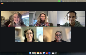 L to R: Rosanne Welch (Chair), Clarissa Miranda (to be new Web Coordinator), Anna Weinstein (Secretary), Bottom L to R: Rose Ferrell (Web Coordinator), Lucian Georgescu (Conversations Coordinator), Hugo Arciniegas (Early Career Representative).